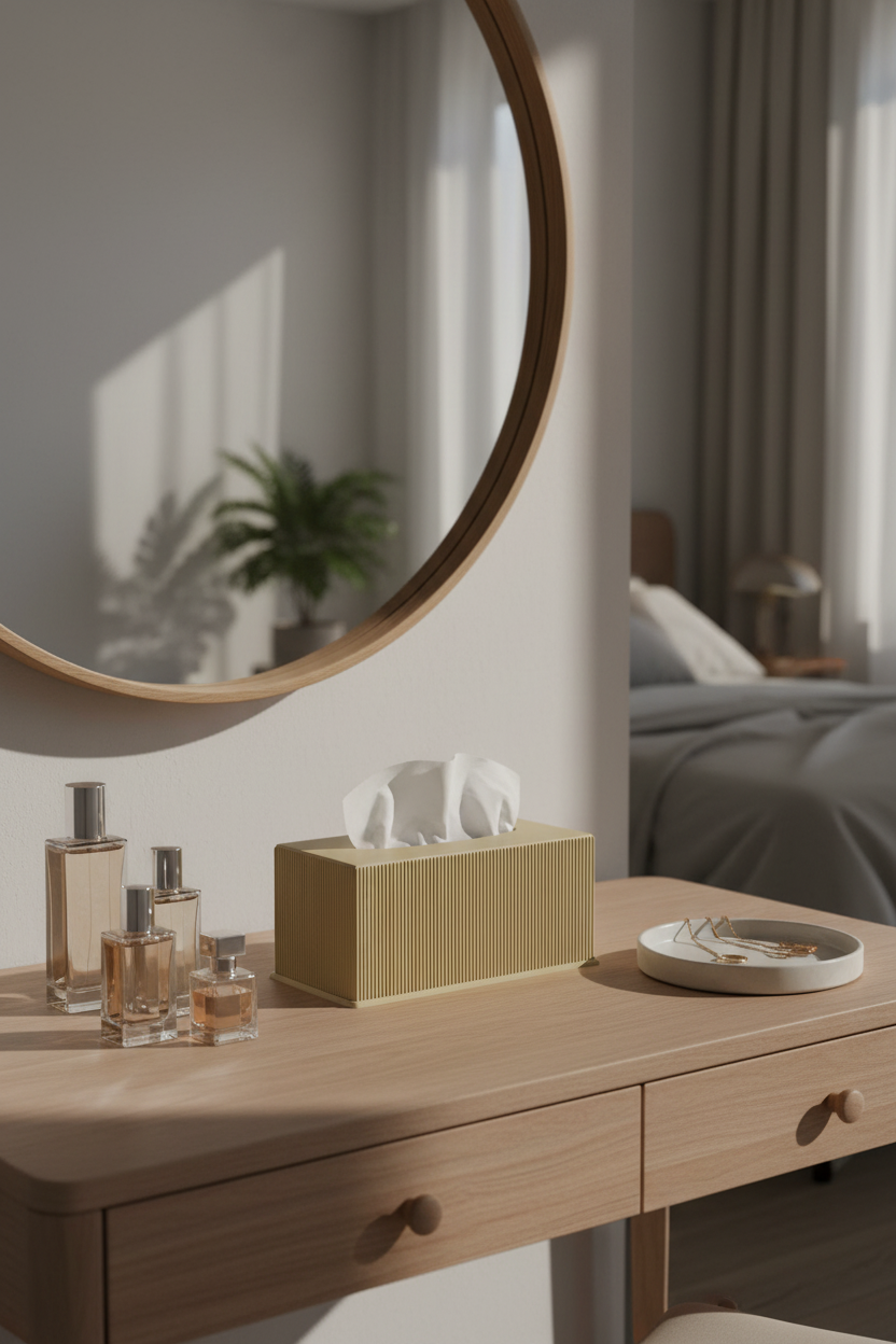 Bring effortless elegance to your everyday spaces with this minimalist ribbed tissue box cover. Designed to blend seamlessly into modern, Japandi, and neutral interiors, it turns a simple essential into a refined decor piece.